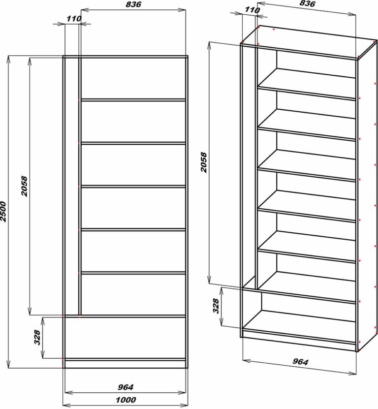 Розміри:(В/Ш/Г) : 2500/1000/450 мм