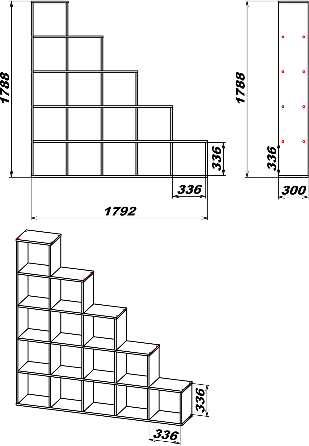 | Розмір у зібраному стані | Висота 1788 мм Ширина 1792 мм Глибина 300 мм Розмір комірки 336*336 мм |