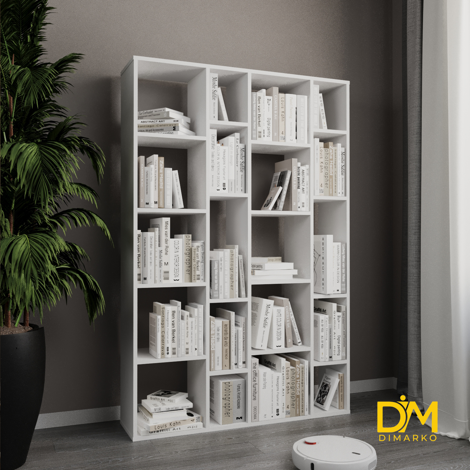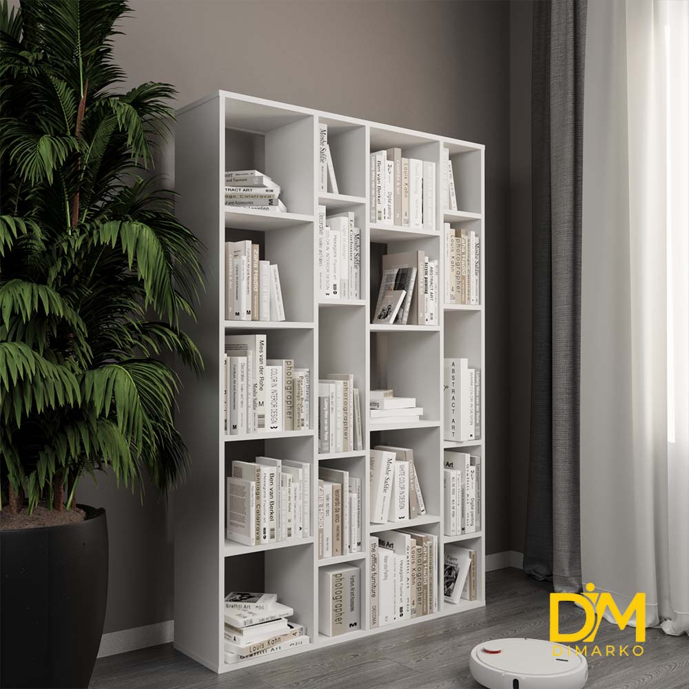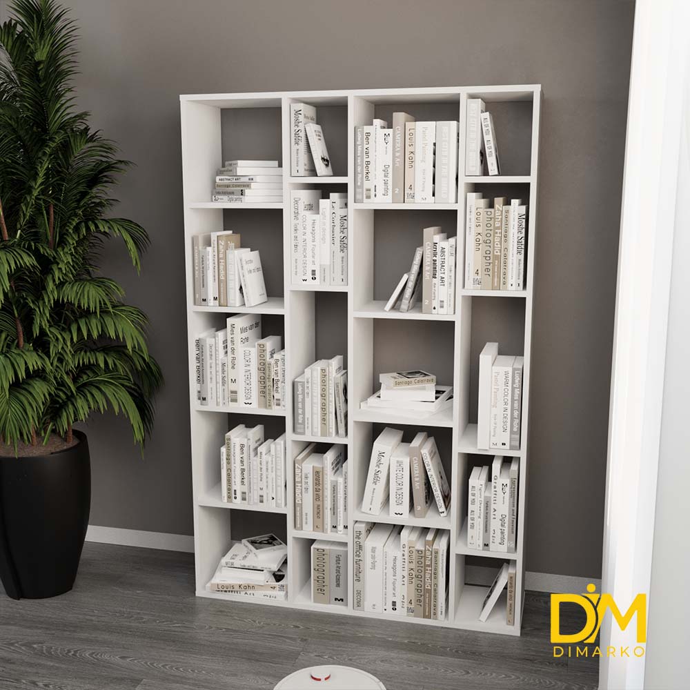 Стильний стелаж з асиметричними полицями, ідеальний для зберігання книг, декору чи інших речей. Компактний дизайн гармонійно впишеться в сучасний інтер’єр, додаючи затишку вашій кімнаті.
