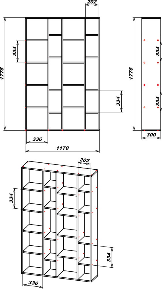 Розміри:(Ш/В/Г) : 1170/1778/300 мм