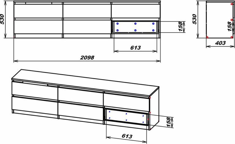 Цей довгий комод з шістьма шухлядами пропонує багато місця для зберігання одягу, білизни, аксесуарів та інших речей, дозволяючи організувати простір з максимальною ефективністю. А якщо бажаєте інший розмір або конфігурацію - звертайтесь! Ми з радістю адаптуємо комод під ваші потреби, змінимо розміри або зробимо інші корективи.