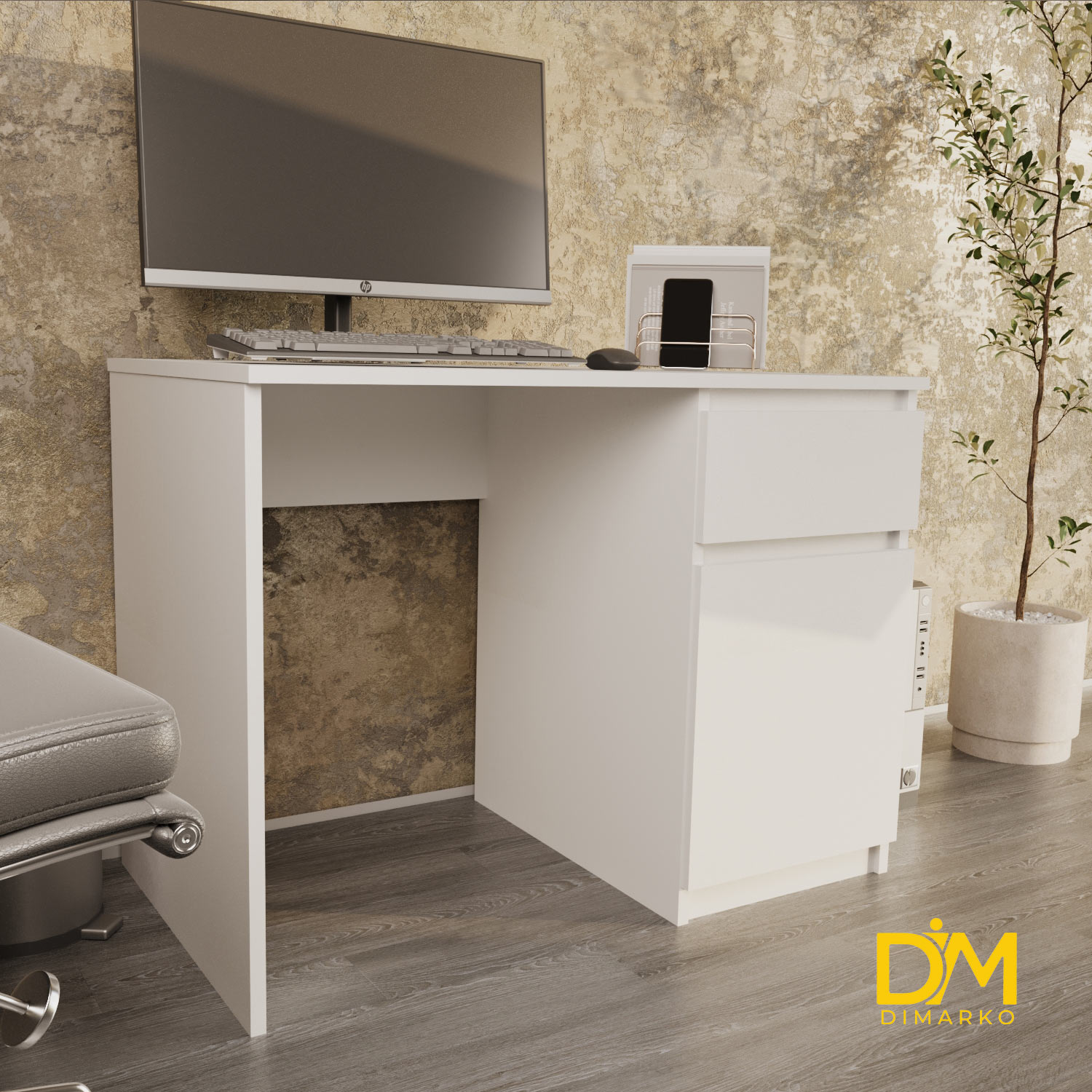 Це доволі компактний письмовий стіл шириною 100 см стане чудовим рішенням коли вам потрібно вміститись в обмеженому просторі. Він не займає багато місця, але при цьому забезпечує достатньо простору для комфортної роботи. Стіл оснащений зручною секцією для зберігання речей та канцелярії, яка складається з однієї шухляди та поличок.