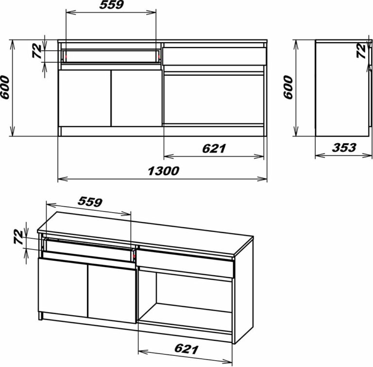 Розміри:(Ш/В/Г) : 1300/650/353мм