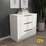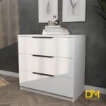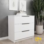 Цей компактний комод з ручками-профілями ідеально підійде для невеликих приміщень, де важливий кожен сантиметр простору. Його розміри (В/Ш/Г): 755/800/400 мм дозволяють розмістити його навіть у вузькому коридорі чи маленькій спальні. Ручки-профілі не лише надають комоду сучасного вигляду, а й забезпечують максимально можливу висоту шухляд, збільшуючи корисний простір для зберігання. Телескопічні направляючі повного висуву гарантують плавне та безшумне висування шухляд, а також дозволяють використовувати весь їх вміст. Комод виготовлений з ламінованого ДСП 18 мм, доступний у широкій палітрі кольорів. Ви можете обрати будь-який колір або поєднати декілька, щоб створити унікальний дизайн. За бажанням, можна змінити фурнітуру, розміри та внутрішнє наповнення комоду.