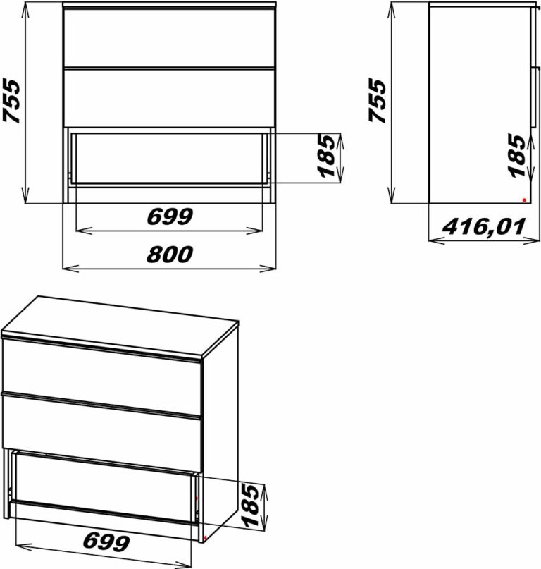 Розміри:(В/Ш/Г) : 755/800/400мм