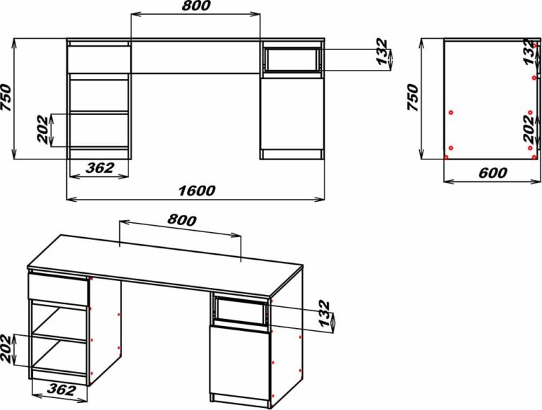 Цей великий письмовий стіл стане вашим надійним помічником в організації робочого простору. Завдяки широкій стільниці (160 см), на ній з легкістю помістяться всі необхідні речі: комп'ютер, книги, документи та інші аксесуари. З кожного боку столу розташовані шухляди та дверцята, за якими знаходяться полички, що забезпечує додатковий простір для зберігання канцелярії та інших речей на відстані витягнутої руки. Особливості столу: велика та зручна робоча поверхня, місткі секції для зберігання, зручний доступ до всіх шухляд.