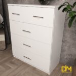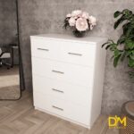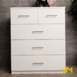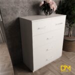 Цей комод з п'ятьма шухлядами стане хорошиим рішенням для Вашої спальні або вітальні. Верхня секція комоду розілена на дві окремі шухляди щоб розділити дрібніші речі між собою. Він має елегантний дизайн з простими формами та зручними ручками, дизайн яких ви можете підбирати під ваші побажання. П'ять шухляд різних розмірів дозволяють зручно організувати зберігання речей. Комод виготовлений з міцного ЛДСП 18 мм. Обирайте колір та додавайте фурнітуру з дотягом, змініть розміри та кількість шухляд - створіть комод, який ідеально відповідатиме вашим потребам.