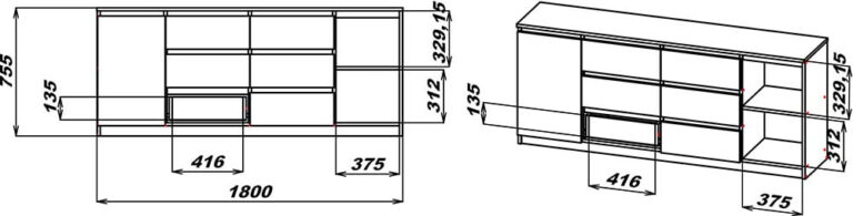 Комод оснащений шістьма шухлядами, зручно розташованими посередині в три ряди, та двома відділеннями з полицями за дверцятами по боках. Таке поєднання дозволяє зберігати різноманітні речі: від одягу до документів та аксесуарів. Відсутність ручок надає комоду доволі суворого вигляду та підкреслює його мінімалістичний дизайн. Цей комод стане незамінним елементом у вашому домі, допомагаючи підтримувати порядок та створювати затишну атмосферу через значний об’єм речей, що в нього може поміститись.