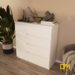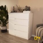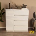Компактні розміри (В/Ш/Г) 980/1000/403 мм дозволять комоду гармонійно вписатися в будь-який інтер'єр. Чотири шухляди дозволять помістити багато ваших речей, а за дверцятами, які можна встановити на праву або ліву сторону, ховаються додаткові полички.Відсутність ручок підкреслює лаконічний дизайн та надає комоду сучасного вигляду. А щоб він втілював всі ваші бажання ви можете також збільшити або зменшити його розміри або змінити наповнення
