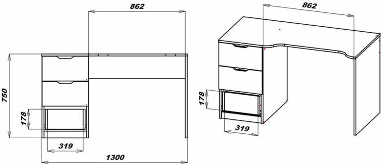 Сучасний комп'ютерний стіл з оригінальним вирізом буде стильним та функціональним варіантом для Вас. Відсутність ручок на шухлядах підкреслює мінімалістичний дизайн, який гармонійно впишеться в будь-який інтер'єр.