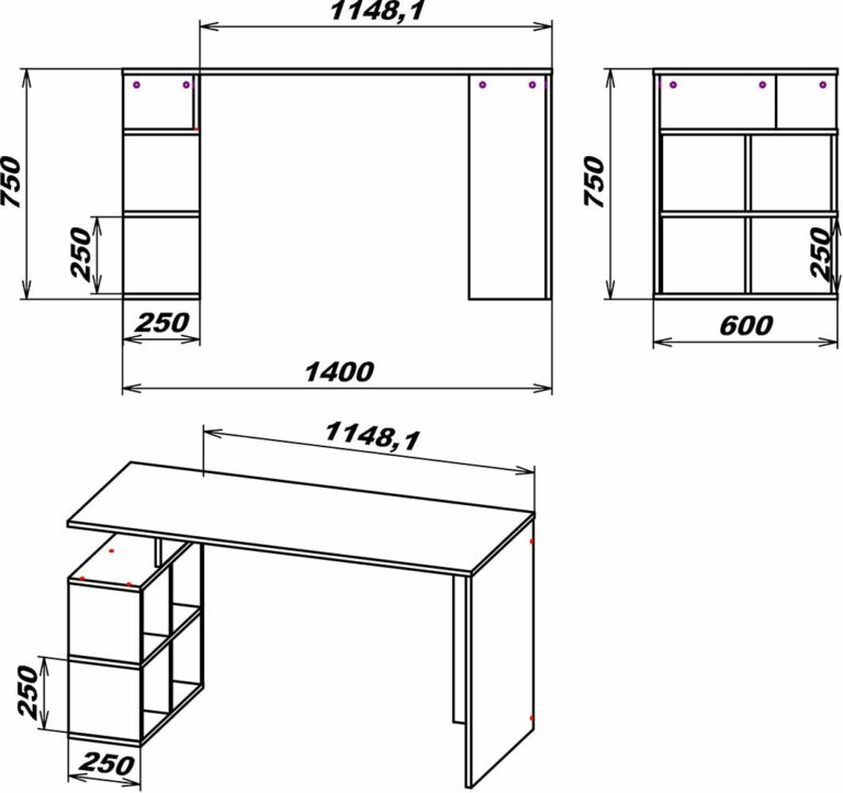 Письмовий стіл з відкритими полицями дозволить безперешкодно користуватись книгами, чи іншими речами розміщеними в них. Чудове підійде у тих випадках, коли потрібно окрім столу ще й невеличний простір для зберігання необхідних речей під час навчання чи роботи.