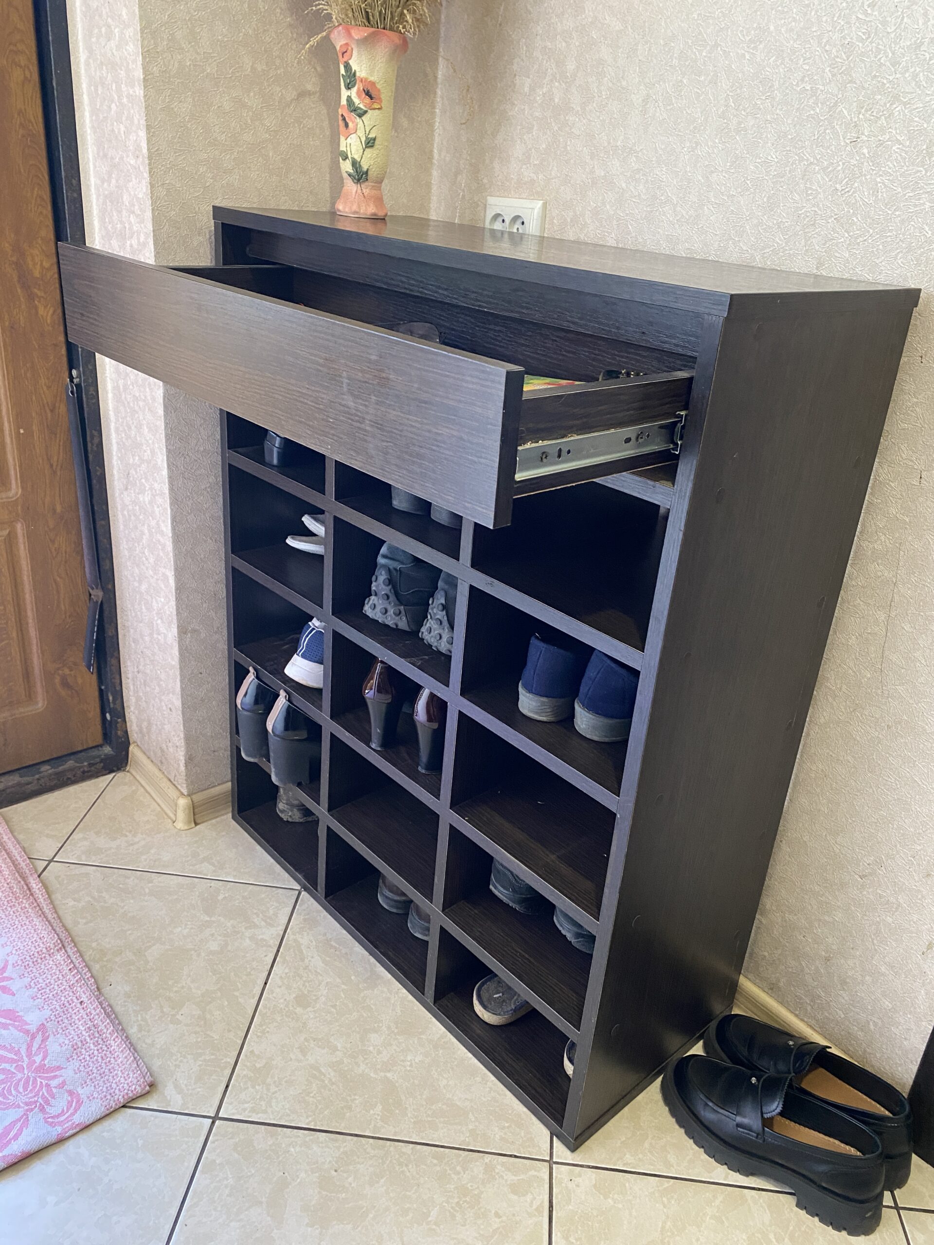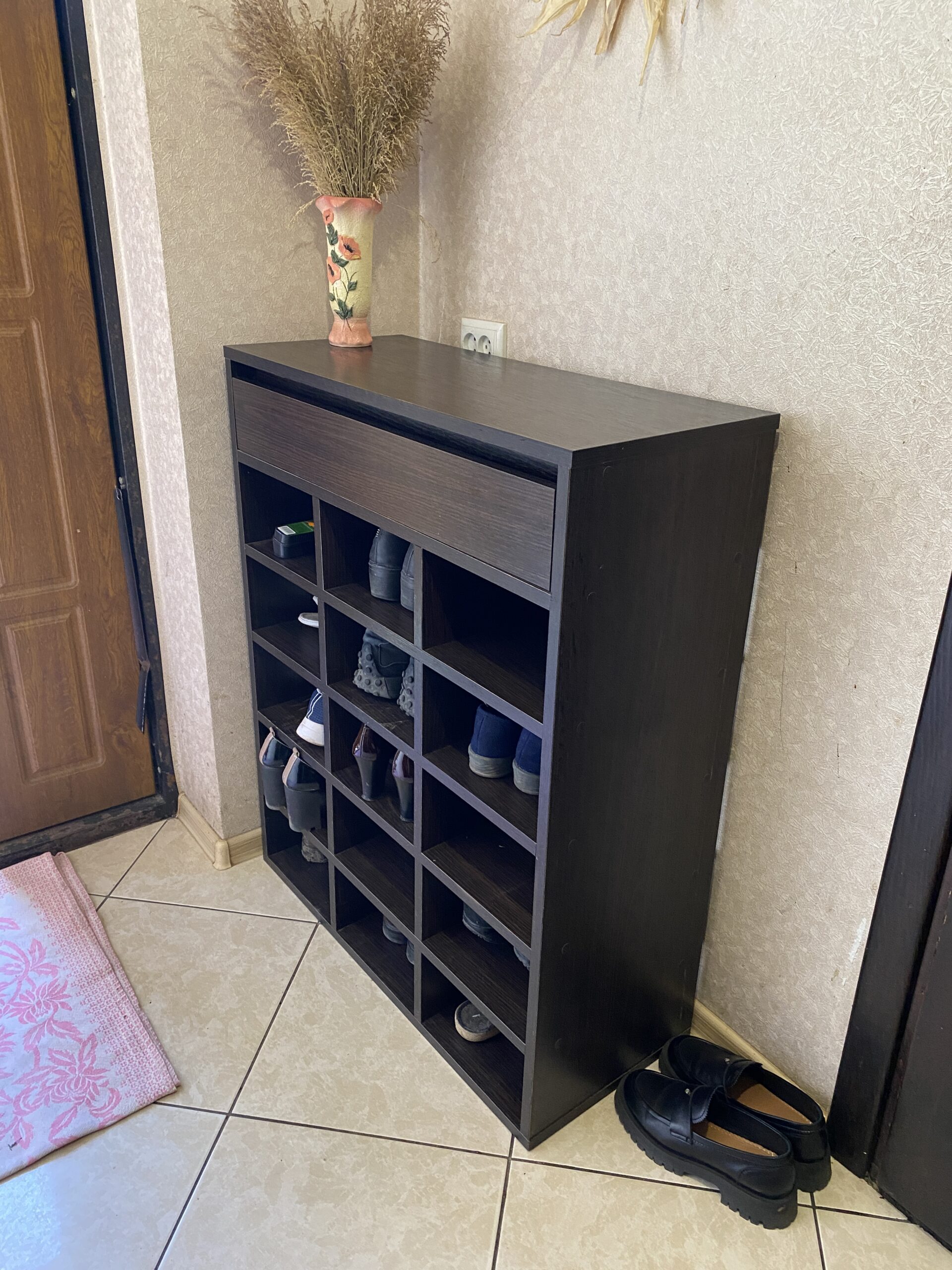 Тумба для взуття на 15 комірок буде здатна помістити багато різного взуття, а вузька поличка зверху дозволить зберігати речі, які завжди так необхідні при виході з вашої домівки.