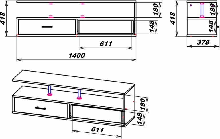 Розміри:(Ш/В/Г) : 1400/418/378 мм